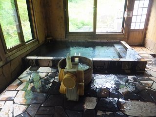 内湯は4人が入れる大きさの石板作りの浴槽です。