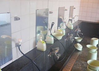 中央自動車道の河口湖インターから139号線(富士パノラマライン)を富士宮方面に走って、 道の駅あさぎり高原の先で 朝霧グリーンパーク入り口の信号を右折すると、左に 広い 駐車場があります。 ![]() ___(グリーンパークホテル)_________(グリーンパークから見た毛無山) ホテルの左端にある入り口を入ると 1階に受付と飲食物を持ち込める休憩所があって、 2階に浴室があります。 ![]() _(浴室の入り口に掛かる湯のれん)_________(洗い場ドレッシング) 浴室は 左にカランが並んでいて、床に使われている石板の感触が良かった。 ※ 20年ほど前に作られた施設ということで ダイヤル式のカランですが、私は 一定量が出て 止まるプッシュタイプよりも、使う量を調整できるダイヤル式の方が使いやすくて好きです。 (洗い場)内湯の前面が開放感のあるガラス張りで 浴槽に使われているタイルの感触が良くて、 温泉の温度が適温だったので 快適にくつろげました。 ※ 無色透明・無味無臭の温泉は循環ろ過・加熱されていると思いますが、わずかに ツルスベ感を感じたので、循環された温泉に源泉を加えているのかもしれません。 (バブルが出ている内湯の浴槽)露天風呂の浴槽の縁には溶岩が積まれていて、そこにシダや苔が植え込まれています。 (露天風呂)こちらの温泉の一番のお勧めは富士山の眺めで、富士山の周りにある温泉の中でも (富士 五湖の湖畔にある温泉を除けば) この露天風呂から眺める富士山は上位に入ると思います。 (露天風呂から見た富士山)富士山の眺めは良かったが、老朽化を感じさせる施設に循環された温泉で千円は高くて、 私が入った時は15時を過ぎていたので800円でしたが、それでも割高感が否めませんでした。 この日は貸切の状態で利用できましたが、近くに 大きな オートキャンプ場やレジャー施設が あるので、夏場の週末は混雑するかもしれません。