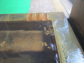 中に入ったら 券売機で購入した入浴券をフロントに出します。 (フロントと券売機)広いロビーにはセンスの良いテーブルセットがあり、大広間の天井には竹製の格子があって、 休憩所の外にはウッドデッキのテラスがあります。 ※ 館内への飲食物の持ち込みは禁止です。 ![]() ______(籐製のイス)_________________(大広間) ロビーから右に行った廊下の奥に浴室の入り口があります。 (浴室の入り口に掛かる湯のれん)脱衣所は広くて、左の壁にロッカーがあって 右に洗面台があって、ロッカーは10円だが 枠が小さいうえに中にカゴが入っていて使いにくかった。 ![]() ____(鍵付きのロッカー)_____________(洗面ドレッシング) 温泉の利用状況には源泉名が書かれてなくて、泉質は ナトリウム・マグネシウム・硫酸塩・ 炭酸水素塩泉で、大浴槽と露天風呂は全て温泉水を使用し 浴槽に常に新しい温泉を注入 してあふれさせるかけ流し式で、一部循環式です。 ![]() (体重計と冷水器、外にウッドデッキのテラス)______(温泉の利用状況) 浴室に入ると かけ湯があって、右に仕切り板が付いた洗い場がありますが、シャンプーは リンスインタイプで シャワーは勢いが強かった。 ![]() _______(かけ湯)_________________(洗い場) 内湯の浴槽は12〜3人が入れる大きさで 右の壁からジェットが出ていて、温泉は透明ですが、 浴槽は 温泉由来の成分で茶色くなっています。 ![]() ______(内湯の浴槽)_______________(浴槽の右側) 温泉の温度はぬるめの適温で 無色透明・無味無臭に鉄サビの味と臭いがしますが、 肌触りにヌルスベやツルスベなどの特徴は感じません。 ![]() ____(湯口と2連のジェット)__________(浴槽からあふれる温泉) 浴室に 瓦屋根が付いたサウナと水風呂がありましたが、私は利用していないので分かり ません。 ![]() _____(サウナと水風呂)______________(浴室の天井) 露天風呂は5人が入れる岩風呂で屋根が付いています。 ![]() ___(露天風呂にある長イス)____________(露天風呂の浴槽) 泉質は内湯と同じですが 温度は露天風呂のほうがくて、浴槽の一部からジェットが出て いますが 勢いは弱かった。 ![]() _____(露天風呂の湯口)____________(露天風呂のジェット) 露天風呂も半かけ流しで、浴槽からあふれた温泉は排水口に流れ込んでいます。 ![]() ___(排水口に流れ込む温泉)___________(浴槽の横にある竹林) _____ - - - - - - - - - - - - - - - - - - - - - |