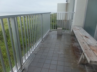 露天風呂はありませんが、テラスに出ると 目の前に広がる海を見ながら涼むことが出来ます。