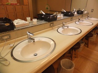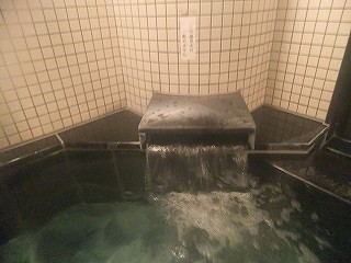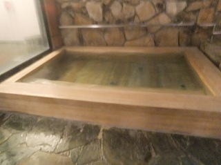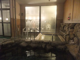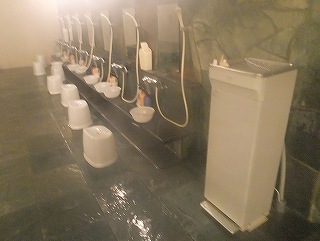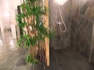 (宮浜 べにまんさくの湯)下駄箱の鍵と入浴券を受付に渡すと ロッカーキーを渡してくれます。 ![]() _______(券売機)__________________(受付) 受付の右にある湯のれんをくぐると、中に もう一枚の湯のれんが掛かっています。 ![]() ___(入り口に掛かる湯のれん)___________(中にある湯のれん) 広い脱衣所は清掃が行き届いて ロッカーも大きくて使いやすい。 ![]() ____(洗面ドレッシング)_______________(ロッカー) 脱衣所にある温泉分析書によると 源泉名は宮浜温泉2号井、泉質は 単純弱放射能温泉で、 温泉表示によると、加水はしていないが 加温・循環装置・塩素系薬剤を使用していて 季節感を感じるために入浴剤を使用しているそうです。 (温泉分析書・温泉表示・入浴上の注意)浴室に入ると正面にかけ湯があって、左に 立って使うシャワーと6つの洗い場があって、 右に 7つの洗い場があります。 ※ ここからデジカメの調子が悪くなって、数枚の画像がブレてしまいました。 ![]() _______(洗い場)______________(立って使うシャワー) 右奥のコーナーにサウナと水風呂がありましたが、私は利用してないので分かりません。 (サウナと水風呂)浴室の窓に面した大浴槽は10人が入れる大きさで 一部が鍵型になってます。 ※ 温泉は無色透明・無味無臭で肌触りにも特徴がなく カルキ臭がきつかった。 ![]() _______(大浴槽)__________________(湯口) 露天風呂の出入り口の隣にある お楽しみの湯は5人が入れる大きさで、浴槽の溝から オーバーフローになっていますが、その量は 湯口から出ている量とは比べ物にならない ほど少なかった。 ※ この日はショウガ成分が入った赤いお風呂で、この浴槽は塩素臭を感じませんでした。 ![]() _____(お楽しみの湯)_________________(湯口) 露天風呂に出ると 左に3人が入れる桧風呂があって、その奥に大きな岩風呂があって、 右の壁に泡風呂があります。 ![]() ___(露天風呂のヒノキ風呂)___________(中央に柱がある岩風呂) 露天風呂は どの浴槽も温度がぬるめ(39〜40度)で、肌触りに特徴がないうえにカルキ臭が きつかった。 (泡風呂)露天風呂のすぐ近くを線路が走っていて、生垣の外を電車が通った時はビックリしました。 ![]() ______(露天風呂)_______________(岩風呂を囲む生垣)