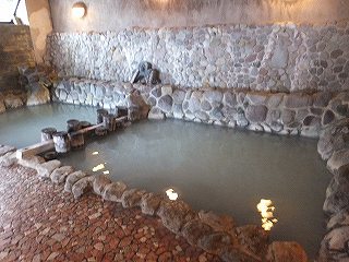 靴箱の鍵と券売機で購入した入浴券を受付に出すとロッカーキーを渡してくれます。 ![]() ________(受付)__________________(券売機) 山の斜面にある 湯屋えびすは敷地が狭いので、ロビーは それほど広くありません。 ※ 道路の高さと同じ階(ロビーがある階)が3階です。 (ロビー)偶数日と奇数日で男女が入れ替わる浴室は、この日は奇数日だったので 2階にある石の 小道と癒しの洞窟の浴室が男性用で、1階にある 風と歩く石畳の浴室が女性用でした。 ※ 浴室に行くエレベーターもありますが、2階だったので階段で下りました。 ![]() _____(浴室に下りる階段)_________(浴室の入り口に掛かる湯のれん) 脱衣所はそれほど広くないが、ロッカーは大きくて使いやすいです。 ![]() ___(ドレッシングコーナー)_____________(脱衣ロッカー) 脱衣所にある温泉カルテによると、岩風呂の泉質は単純硫黄泉で 循環・加温・加水・入浴剤 及び殺菌剤の項目は全て無です。 (温泉カルテ)脱衣所と浴室の入り口の間にある部屋に 飲用できますと書かれた湯と水の蛇口があって、 浴室に入ると 最初に掛け湯があります。 (掛け湯)掛け湯の向かいにある洗い場は背中にも衝立があって シャワーが飛び散らないようになって いて、容器に炭と書かれたソープ類を手に取った時には黒くてビックリしましたが、泡立てると 真っ白になりました。 ![]() _(掛け湯の向かいにある洗い場)__________(炭と書かれたソープ類) 浴室の左にある石の力湯は 5〜6人が利用できるタイル張りの半身浴の浴槽で、無色透明 の温泉はぬるめで これといった特徴を感じませんげ、湯口の中と浴槽の床面に使った ゲルマニウムの力で血行が良くなり、肩こり・腰痛・ストレス解消・自律神経や美容に 効果があるそうです。 ![]() ____(石の力湯の浴槽)_________________(湯口) 半身浴の浴槽からは 窓の外に高速道路の橋と別府湾が見えます。 (石の力湯から見た景色)掛け湯の奥にある5つの滝と岩の風呂は 白濁の温泉が源泉かけ流しになってて、 温泉は硫化水素の臭いがしましたが 湯口がないので味は分かりませんでした。 ![]() ____(5つの滝と岩の風呂)___________(浴槽からあふれる温泉) この時は 壁に開いた5つの滝の痕跡らしき穴からは温泉が出ていなくて、窓側の壁に開いた 穴の中に えびす屋の名前に由来すると思われる恵比須様があります。 ![]() __(壁の穴と打たせ湯らしき痕跡)____________(恵比須様) サウナはありませんが、白濁の浴槽の隣に えびす様が持っている扇の形をした水風呂が あります。 (えびすの扇・水風呂)えびすの扇の隣にある洞窟風呂は 閉ざされた部屋になっているだけで洞窟という感じは せず、温泉の温度もぬるいので サウナ(蒸し風呂)のような効果も期待できませんでした。 ※ 温泉は無色透明で 泉質にもツルスベやヌルスベなどの特徴を感じませんでした。 ![]() ____(洞窟風呂の入り口)____________(8人が入れる浅い浴槽) 洞窟風呂の向かいにある7つの洗い場は幅が広くて使いやすいです。 (浴室の奥にある洗い場)露天風呂は浴槽の中央が寝湯になっていて温度はぬるめで、白濁の温泉は100%の源泉 かけ流しで、浴槽からあふれた温泉は排水口に流れ込んでいます。 ※ 露天風呂といっても 天井が低いうえに外が見えないので開放感はありません。 (石の小道と露天風呂の浴槽)私は 湯上りは ヒーリングスペースで癒される曲を聴きながら寛ぎましたが、ヒーリング スペースの隣に えびすの海というゲルマニウムのタイルを使った部屋もありました。 ![]() ____(ヒーリングスペース)______________(えびすの海) _____ - - - - - - - - - - - - - - - - - - - - - |