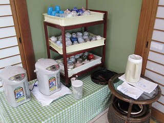 (湯上り) 温泉から上がって大広間に行くと、温泉とセットになっている食事が提供されます。 ![]() _______(大広間)________________(セルフのお茶) 食事は 5〜8月が松花堂弁当で、9〜4月が大分県の郷土料理のだんご汁定食ですが、 だんご汁は ユズの香りがする汁に太い麺が入っていて、タレ付きの とり天も美味しかった。 温泉のせいか だんご汁を食べたためか、食事後も しばらく汗が引きませんでした。 (だんご汁定食、左奥が とり天)利用する前は 1500円は高いかなと思ってましたが、全国でも数少ないコバルトブルーの 温泉を貸し切りの状態で楽しめたうえに とり天とおにぎりが付いただんご汁を食べられて 大満足しました。 _____ - - - - - - - - - - - - - - - - - - - - - |