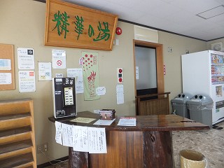 ![]() _____(台温泉 精華の湯)______________(道路沿いに立つ看板) (受付)受付には人がいなくて、券売機で買った入浴券を 受付の台にある箱に入れるように書かれて いました。 ![]() ________(券売機)________________(入浴券を入れる箱) 受付の前にある貴重品ロッカーの奥に男湯の入り口があって、廊下の奥に 女湯があります。 ![]() _____(貴重品ロッカー)____________(浴室の入り口に掛る湯のれん) 脱衣所は広くて清掃も行き届いています。 ![]() _______(脱衣棚)_________________(洗面ドレッシング) 脱衣所にある温泉分析書によると 源泉名は台温泉(寿の湯)、泉質は 含硫黄-ナトリウム- 硫酸塩・塩化物泉で、温泉に影響を与える項目に 加水のみしていて、消毒はせずに 毎日 全換水ならびに浴槽内の掃除をしていると書かれてました。 ![]() ______(温泉分析書)______________(温泉に影響を与える項目) 浴槽の左にある洗い場は、カランが 温泉成分の影響で黒くなってます。 ![]() _______(洗い場)__________________(イスと洗面器) 浴室は窓ガラスが大きくて、天井は 半分が蛇の目傘のようになっています。 ![]() ___(浴室から見た外の景色)_______________(浴室の天井) 浴槽は6〜7人が入れる大きさで、中央に 仕切りの棒があります。 (浴槽)無色透明の温泉の温度は適温で、わずかに硫化水素臭とゆで玉子の味がして、ツルスベの 肌触りです。 温泉はかけ流しで 浴槽からオーバーフローになっています。 ![]() ________(湯口)________________(浴槽からあふれる温泉)
