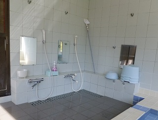 大名見にある「明見第一駐在所前」の信号から東にある狭い路地に入って、すぐの分岐を 左に進んで川に沿った狭い農道を走ると 傾斜がきつくなりだした所にあります。 駐車場は4〜5ヶ所ありますが、どこも斜面だったり狭かったりでアルファードでは大変でした。 (不動湯)玄関を入ったら 左にあるタッチパネルの券売機で入浴券を購入します。 ※ この時は4時前でしたが、登山姿の私を見て「登山者は500円でいいですよ」と言って くれました。 ![]() ___(タッチパネルの券売機)_______________(受付) 5月の始めだったので、受付の右にあるロビーに五月人形が飾られてました。 ![]() _______(ロビー)__________________(五月人形) ロビーの奥にある廊下の突き当たりに 皮膚病の方専用の新風呂があります。 (浴室の入り口に掛かる湯のれん)こちらの浴室はキレイなタイル張りで 左に2つの洗い場があります。 浴槽は温度違いになっていて、2人用の浴槽は30〜32℃の水風呂で、3人用の浴槽は 39〜42℃です。 ![]() _______(洗い場)_________________(明るい浴室) 湯口には冷泉と加温泉が出ている2つの蛇口があって、湯口に飲泉用のカップが置いて あり、浴槽からあふれた温泉は 浴槽の縁にある切れ込みからオーバーフローになってます。 ![]() ___(蛇口に置かれたカップ)______________(浴槽の排湯溝) 療養泉の奥に一般の人が使う浴室があります。 (一般者用の浴室の入り口)脱衣所は清掃が行き届いて、籐の籠が乗った脱衣棚とスチール製のロッカーがあります。 ![]() _____(洗面ドレッシング)____________(脱衣棚とロッカー) 浴槽は こちらの方が少し大きくて、無色透明・無味無臭(かすかに温泉臭がしたが無臭で いいと思う)の温泉は 肌触りも真湯と変わりません。 (一般者用の浴槽)