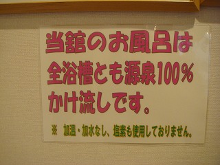 100%かけ流しで 加温・加水なし、塩素も使用しておりません」 と書かれていました。