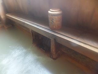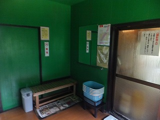282号線からの道は舗装されているものの かなり狭い。 (古遠部温泉)古遠部温泉は山の中にある一軒宿で、一昔前の雰囲気を残した作りです。 ![]() ________(受付)__________________(受付前の休憩所) 館内の至る所に撮影禁止の張り紙があったので「温泉分析書だけ撮影してもいいですか」と 聞いたら、以前 客同士がもめたことがあるが 今日は誰もいないから自由に撮影してかまわ ないと言われました。 (撮影禁止の注意書き)受付の奥にある階段を下りて行くと 左に女性風呂の入り口があって・・ ![]() _____(浴室に下りる階段)______________(女性風呂の入り口) その下に 男湯の浴室の入り口があって、その右に 洗面台と洗濯機とトイレがあります。 ![]() ____(男子浴室の入り口)_____________(トイレ・洗濯機・洗面台) 脱衣所は薄暗いうえに 壁が緑色に塗られていて、脱衣棚は画像で見るよりも狭かった。 ![]() ________(脱衣棚)___________________(腰掛) 受付の横と女子浴室の入り口にある温泉分析書によると 源泉名は古遠部源泉で、泉質は ナトリウム・カルシウム-塩化物・炭酸水素塩・硫酸塩泉です。 ![]() ______(浴室の入り口)_________________(温泉分析書) 浴室に入ると 左に1つだけ洗い場があって、右奥に 台が付いた2つの鏡があります。 ![]() _______(洗い場)__________________(台が付いた鏡) 浴室は縦長で、左側に5人が入れる浴槽があります。 ![]() ________(浴室)__________________(奥から見た浴室) 温泉は100%の源泉掛け流しですが、かけ流しの量が半端でなかった。 ※ 浴槽の縁に大量の温泉由来成分の結晶が成長しています。 (浴槽からあふれる温泉)ウグイス色の温泉の温度は やや熱めで、鉄の臭いとニガリのような味がします。 温泉は体の芯から温まる泉質で、温泉から上がった後も なかなか汗が引きませんでした。 ![]() ___(湯飲みが置かれた湯口)_____________(排湯口に流れ込む温泉) 窓の外に 流れ出た温泉で茶色くなった山肌が見えました。 (茶色くなった山肌)_____ - - - - - - - - - - - - - - - - - - - - - - |