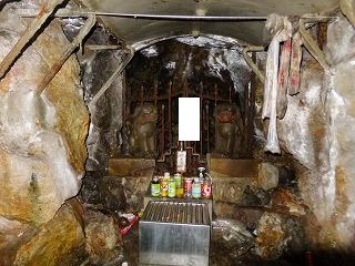 温泉街の奥にあって、その向かいに鬼子母神が祀られた坑道があります。