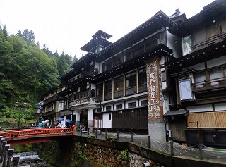 銀山温泉のネックは食事を出来る店が少ないことで、この時は 白銀滝の前にある瀧見館で