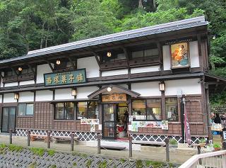 温泉街に入ると 白銀(しろがね)橋のたもとに西塚菓子舗 明友庵があって、白銀橋を渡ると