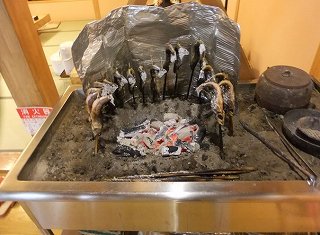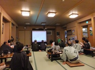 関越道の小出ICから352号線を走り、枝折峠か奥只見シルバーライン経由で銀山平まで。 銀山平の温泉は 平成14年4月の銀山平温泉下開湯と共に温泉郷全体が移転をしたので、 全ての宿が新築です。 (白銀の湯から見た銀山平の温泉郷) (ゆの宿 湖山荘)受付で宿泊手続きをしたら ログハウスの宿泊棟に案内されました。 ![]() _____(湖山荘の受付)_________________(ロビー) 湖山荘には 本館以外に3棟のログハウスがあって、私が宿泊したのは「中ノ岳」でした。 (ログハウス中ノ岳)ログハウスは 1階のダイニングルームに簡単なキッチンとトイレがあって、その奥の部屋が 寝室になっていて、2階がロフトになってます。 ![]() ____(ダイニングルーム)________________-(キッチン) ![]() _______(トイレ)__________________(寝室) 夕食は本館に行って食べます。 ![]() ___(本館の土産コーナー)_________-(食堂の前で焼かれていたイワナ) 湖山荘の宿泊者は 平ヶ岳の登山者よりも渓流釣りの人の利用の方が多いようで、中広間の 壁に沢山の魚拓が貼られています (沢山の魚拓が貼られた中広間)夕食は 食前酒の日本酒・イワナの塩焼き・刺身・寿司・マイタケの天ぷら・鍋物・手打ちそば ・エビの煮物・漬物・・ 最後にゴマ豆腐が出て、全部食べるのは大変です。 ![]() ________(夕食)________________(別注文の地酒) 食後、プロジェクタを使って 明日登る平ヶ岳登の登山道の案内をしてくれました。 ![]() (熊の毛皮がある囲炉裏、白いのがプロジェクタ)__-(登山道の案内をしています) 温泉は 玄関の奥にある階段を下りた所にありますが、地下というわけではありません。 ![]() _(浴室の入り口の前にある造花)________(浴室の入り口にかかる湯のれん) 清掃が行き届いた脱衣所は適度な広さで清潔感があります。 ![]() _______(脱衣棚)_______________(洗面ドレッシング) タイル張りの浴室も清掃が行き届いて、ソープ類はシャンプーとリンスが別々で シャワーも 自分で出したり止めたりできるタイプで使いやすい。 (洗い場)内湯は3人が入れるタイル張りの浴槽で 温泉の温度はぬるめです。 無色透明・無臭の温泉を口にすると わずかに苦い味がして、肌触りはサラッとした感じです。 (内湯)露天風呂は2人が入れる岩風呂で、泉質は内湯と同じですが 温度は内湯よりも さらに ぬるかった。 ※ 露天風呂の先に川が流れていて、夜は 周りの樹木がライトアップされます。 ![]() _______(露天風呂)_____________(露天風呂のライトアップ)