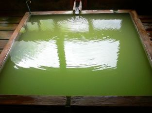 (薄黄緑色の露天風呂)