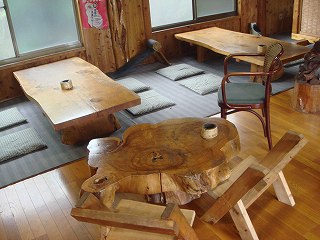 (その他) 休憩所には 巨木から作られたテーブルや家具が沢山並んでいます。 ![]() _______(休憩所)______________(トトロのぬいぐるみ) 和風食事処 大野路は ほろほろ鳥・ダチョウ・阿波尾鶏の料理が有名らしくて、沢山の人が 食事に来ていました。 ![]() ___(庭先にある コケの水車)____________(食事処 大野路) 食事処の向かいに お土産処があって、その奥に 巻狩の宿があります。 ![]() ______(お土産処)_________________(巻狩の宿) ________ - - - - - - - - - - - - - - - - - - - |