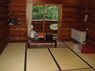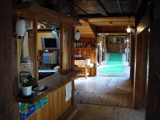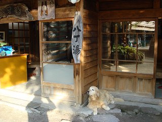 (駐車場にあるバス停)前回、奥鬼怒温泉郷を散策した時は鬼怒川に沿った遊歩道を歩きましたが、今回は八丁湯 に宿泊するので 送迎バスに乗れました。(立ち寄り入浴では送迎バスに乗れません) ![]() ____(八丁湯の送迎バス)_____________(バスから見た林道) 送迎バスに30分乗って八丁湯に着きました。 ![]() _____(庭先にある看板)________________(八丁湯) 玄関で 八丁湯のマスコットであるゴールデンのチビが出迎えてくれました。 ※ 受付の上に日本秘湯を守る会の提灯があります。 ![]() (八丁湯のマスコット、ゴールデンのチビ)_____(受付と露天風呂に行く廊下) 宿の形式は旅館ですが、布団の上げ下ろしは自分でやらなくてはなりません 部屋にクーラーはありませんが 窓の外に木が多いので真夏でも涼しいと思います。 (私が利用した和室の部屋)ログハウス棟の部屋を見せてもらったら、壁が山小屋のような丸太で 天井から吊り下げ られた照明も良い雰囲気でしたが、広さや調度品は 和室とあまり変わりませんでした。 ![]() ______(ログハウス棟)______________(ログハウス棟の部屋)