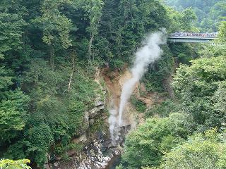(川俣の間欠泉) 光徳からの道と合わせる 川俣の橋の下にある間欠泉で、噴出予想時間の残りが8分だった ので展望台に行って見ました。 (間欠泉の噴出予想時間を示す時計)源泉口にあるコンクリートの箱から湯が出始めたら それが間欠泉が噴出する前兆ですが、 間欠泉が噴出する時間は短時間なので デジカメの電源を切っていたら間に合いません。 (川俣の間欠泉)_____ - - - - - - - - - - - - - - - - - - - - |