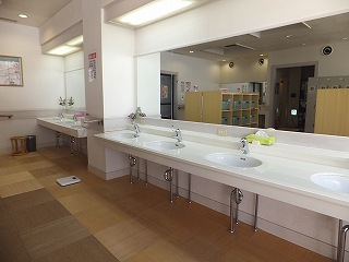 ※ 通常営業時間 5〜10月 10:00〜22:00、11月〜4月 10:00〜21:00→ 550円。 朝風呂時間 7:00〜8:30→ 300円。 東和温泉は 道の駅とうわに隣接した施設です。 (道の駅とうわ)私は 道の駅とうわで車中泊をして、朝風呂の時間帯に利用しました。 ![]() ___(メルヘンチックな東和温泉)___________(施設の前にある庭園) 玄関を入ると 左に靴箱と受付があります。 ![]() ___(玄関にある温泉の案内)_________________(受付) 廊下を歩いて 直角に2回曲がると、その奥に浴室の入り口があります。 (浴室の入り口に掛る湯のれん)脱衣所自体は広いのですが、中央にある脱衣棚がスペースを取っています。 ![]() ___(スチール製のロッカー)__________(プラスチックの籠が入った脱衣棚) 脱衣所の右奥の壁と左の壁の一部に 洗面台が並んでいます。 (清掃が行き届いた洗面台)脱衣所にある温泉分析書によると 源泉名は東和温泉(日高見の湯)、泉質は 単純温泉で、 成分に影響を与える項目に 加温と塩素消毒をしていると書かれていました。 (温泉分析書)浴室に入ると かけ湯があります。 (かけ湯)左に 立って使うシャワーとフィンランドサウナがあって、洗い場は 左に5つ右に7つありますが、 サウナは朝風呂の時間帯は利用できなくて、洗い場のソープ類はチープな感じでした。 ![]() ________(洗い場)__________(立って使うシャワーとフィンランドサウナ) 浴室の右奥にある浴槽は10人が入れる大きさで、温泉は 右の壁に空いた穴から出ていて、 その隣に設置された箱から ジェットよりも弱いマッサージのような流れが出ています。 湯口がないので味は分かりませんが 臭いはほとんどなく、かすかに緑がかって見える温泉は やさしい肌触りです。 ![]() ________(大浴槽)________________(奥の壁に2つの箱) 浴室の左奥に3〜4人が入れる人工の炭酸泉がありますが、こちらの浴槽は 炭酸が抜け ないようにするためか かなりぬるかった。 (炭酸泉)露天風呂に出てみたら、朝風呂の時間帯なので 露天風呂の浴槽には保温用のブルー シートが掛っていました。 ![]() ____(屋根が付いた露天風呂)_____________(露天風呂の涼み台)