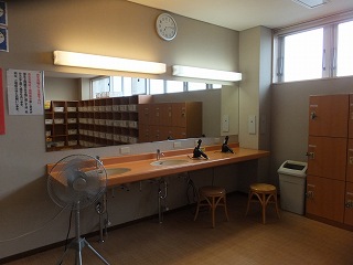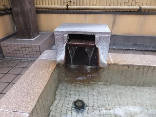 (花の湯)中に入ったら 券売機で購入した入浴券を受付に出します。 ![]() _______(券売機)__________________(受付) 受付の前に地産の商品が並んでいて、その右奥に 浴室の入り口があります。 ![]() ____(ロビーに並ぶ商品)__________(浴室の入り口に掛かる湯のれん) 脱衣所は広くて、右側と窓側の壁に プラスチックの籠が入った脱衣棚が並んでいます。 ![]() _____(凄い数の脱衣棚)_____________(洗面ドレッシング) 脱衣棚の他に 鍵付きのロッカーと貴重品ロッカーもあります。 (鍵付きのロッカーと貴重品ロッカー)浴室の前に流し台だある部屋があって、浴室に入ると かけ湯があります。 (かけ湯)浴室の右の窓側に30の洗い場が並んでいますが、(低料金なので) ソープ類は置いてあり ません。 ※ たまたまかもしれませんが、私が使ったシャワーは出る時間が極端に短かった。 ![]() _______(洗い場)___________(かけ湯の奥に 立って使うシャワー) 浴室の左側に並ぶ4つの浴槽は 手前から やや熱め・適温・電気風呂・ぬる湯の浴槽で、 適温の浴槽の一部が ジャグジーになっています。 ![]() _____(左側に並ぶ浴槽)____________(適温浴槽のジャグジー) 電気風呂は 浴槽の左側だけに電気が流れていますが、刺激は それほど強くありません。 温泉は無色透明・無味無臭で、肌触りに特徴がなく 塩素臭もしませんでした。 ![]() ______(電気風呂)_________________(ぬる湯) 奥の壁にサウナと水風呂がありますが、私は どちらも利用していないので分かりません。 (サウナと水風呂)露天風呂は 手前に2つの釜湯があって その奥に浴槽がありますが、屋根が付いている うえに周囲を壁に囲まれているので 開放感はありません。 ![]() _______(釜湯)________________(ピンクの光は太陽) 露天風呂の浴槽は 縁に御影石が使われたタイル張りで、8人が入れる大きさです。 ![]() ____(露天風呂の浴槽)_________________(湯口) 内湯も露天風呂も 全部の浴槽がオーバーフローになっていて、浴槽からあふれた温泉は 排水溝に流れ込んでいます。 (排水溝に流れ込む温泉)