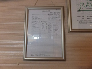 (湯上り) 温泉から上がると 冷水とお茶が用意されていました。 (セルフの冷水とお茶)食事処は営業していなかったので、ロビーにあるソファーでくつろぎました。 ![]() _____(ロビーのソファー)____________(食事処・大広間) 温泉分析書が見当たらなかったので受付の人に聞いたらパンフレットを持ってきてくれまし たが、温泉の成分などは書かれていませんでした。 (ロビーにあった水質検査結果書)_____ - - - - - - - - - - - - - - - - - - - - |