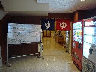 _(ロビー、画像の左がフロント)_______(登山情報が書かれたホワイトボード)