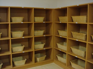広い脱衣所は清掃が行き届いていますが、脱衣棚は籐の籠なので 貴重品はロッカーに