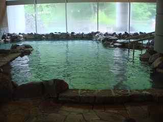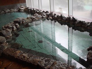 内湯にある大小 2つに分かれた岩風呂は循環ろ過装置を使用していますが、温泉を補給して