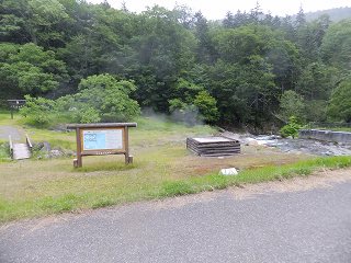 駐車場では 隣にある噴泉塔公園から ゆで玉子のような臭いがしていました。
