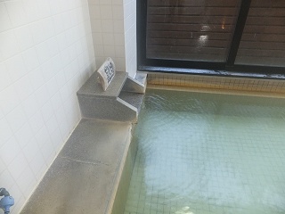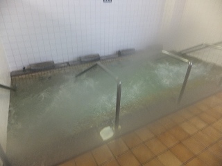 手前にある浴槽の温度は43℃〜44℃で 青白い色をしています。