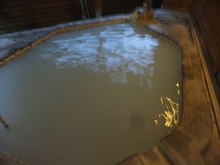 わずかに硫化水素臭がする重曹泉は適温で、無色透明だが わずかに黄色がかっていて、