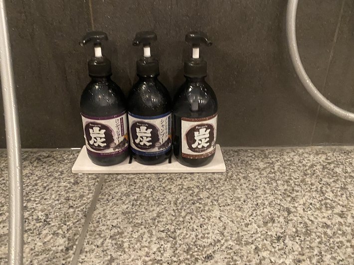 炭の成分が入ったソープ類はシャンプーとボディーソープが真っ黒で