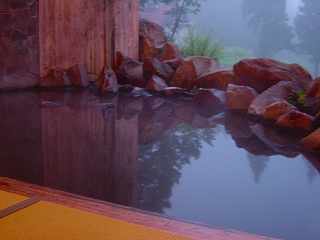上信越道の妙高高原インターを出て「池の平入り口」を左折して走ると 右にあります。 ランドマーク妙高高原の中にある温泉施設で、現在は名前が変わっています。 (ランドマーク妙高高原)浴室に入ると 左側の壁に洗い場がズラーっとならんでいます。 洗い場の奥の方の床に 新潟のメーカーが開発したという防水の畳が敷かれていましたが、 これは 水切れと肌触りが良くて気に入りました。 (手前が鉄平石で奥が畳)浴室の右側に 前面がガラス張りになった「ザッブーン」という大きな浴槽がありますが、温泉は 無色透明・無味無臭で 泉質にも温泉らしい特徴を感じませんでした。 (大きな内湯)こちらの温泉の名物は 南地獄谷の拘泥を混ぜた露天風呂ですが、他の人のウェブサイトを 見ると賛否両論あって 好き嫌いがハッキリするようです。 (露天風呂の拘泥の説明)浴槽の中で温泉をかき回すと 底に溜まった泥湯の黒い湯の花が舞い上がりましたが、 昼間の明るい所で見たら どう感じただろう? 露天風呂は ぬるいので、泥湯好きの人なら ゆったり長湯ができると思います。 (露天風呂)この時は曇りの夕方だったので景色が見えませんでしたが、目の前の草原には色々な花が 咲いていたので、晴れた昼間に入ると 素晴らしい景色を眺められそうでした。 _____ - - - - - - - - - - - - - - - - - - - - |