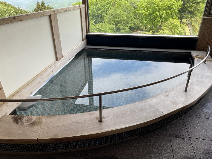 左の浴槽は12人が入れる大きさですが 湯口から温泉は出てません。