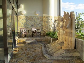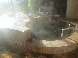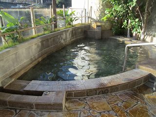 ![]() _(稲佐山温泉ホテル アマンディ)__________(駐車場の入り口) ロビーは土足禁止で フロントに靴箱のキーを預けるとロッカーキーを渡してくれます。 (フロント)フロントがある3階からエレベーターで地下1階に下りると浴室があります。 ※ 1階には展望風呂(和風・バリ風)、岩盤浴、エステ・ボディーケア、休憩室があります。 (浴室の入り口に掛かる湯のれん)脱衣所は広くて清掃が行き届いています。 ロッカーには3つのサイズがあって 洗面ドレッシングはアメニティーが充実しています。 ![]() (正方形のロッカーと縦長のロッカー)_________(洗面ドレッシング) 浴室の前の部屋にある温泉分析書によると 源泉名は稲佐山の湯で、泉質の所に「メタ けい酸の項により鉱泉」と書かれていました。 ![]() ______(温泉分析書)___________(浴室の前にある冷水器と洗面台) 浴室に入ると かけ湯があって、その右奥にある16の洗い場の内の8つには仕切り板が 付いていますが、ソープ類は3種類に分かれているものの中身はチープでした。 ![]() _______(かけ湯)_________________(洗い場) 浴室は広くて 床に使われている赤い大理石のような石の肌触りが良かった。 (浴室)浴室の窓側に4人が入れる浴槽があって、その浴槽からあふれた温泉が手前の浴槽に流れ 込んでいます。 (窓側にある浴槽)この時は清掃の時間が迫っていたからか 窓側の浴槽の湯口からは温泉が出ていません でしたが、私が入ると 体の体積分の温泉が浴槽からあふれ出ました。 ![]() ____(窓側の浴槽の湯口)________(浴槽の縁にある溝から流れ出る温泉) 窓側の浴槽の手前にある円形の浴槽にはジェットの表示がありましたが、この時はジェットが 出ていなくて、床に バブルを出すノズルのような物が見えました。 ![]() ___(円形のジェットバス)______________(床にあるノズル) 左奥の壁にある寝湯の所にもジェットと書かれていて、その隣に電気風呂があります。 (寝湯と電気風呂)入り口の左にサウナと水風呂がりますが、朝風呂の時間帯は利用できませんでした。 ![]() (サウナ、入り口に立ち入り禁止の紙)____________(水風呂) 浴室の右奥にある部屋に バリ風(ロータス風)の植物に囲まれた半露天の浴槽があります。 ![]() _____(半露天の浴槽)______________(浴槽の周りの植物) 露天風呂に出た所に2体のバリ風の石像があって、右奥に 5人が入れる浴槽があります。 ![]() ___(イスとバリ風の石像)_______________(露天風呂) 湯口から温泉が出ていなかったので味は分かりませんが、温泉は無色透明・無臭で肌触り にも温泉らしい特徴を感じませんでした。 露天風呂の浴槽も湯口から温泉が出ていなくて オーバーフローを確認できませんでした。 ![]() _____(露天風呂の湯口)_____________(浴槽の縁にある溝) 露天風呂の柵の外に長崎湾が見えました。 (露天風呂から見た景色)