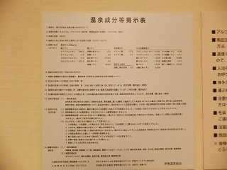 伊豆半島の東側を135号線で南下するとハトヤホテルがあって、その先にある道の駅に併設 されています。 (シーサイド スパ)中に入ると靴箱が並んでいて、靴箱の鍵をフロントに出すとロッカーの鍵を渡してくれます。 ![]() _______(靴箱)__________________(フロント) 浴室は フロントから2階に上がって長い廊下を歩いた先にあります。 ![]() _____(浴室に行く廊下)__________(廊下に展示されているオブジェ) (浴室の入り口に掛かる湯のれん)脱衣所にある温泉成分表によると 源泉名は湯川68号泉 伊藤市湯川字白石571-17で、 泉質は カルシウム・ナトリウム-塩化物・硫酸塩温泉です。 (温泉分析書)脱衣所に 下の注意書きがありました・・ 残念。 (脱衣所にあった注意書き)というわけで、浴室で気が付いたことを書いておきます。 洗面台のアメニティーは充実していて、洗い場のシャワーは勢いが強かった。 手前の大浴槽は43度で、その前に ぬる湯があります。 浴槽は海に向いていますが、目隠しの為に 浴槽に浸かった状態では海が見えなかった。 無色透明・無臭の温泉は海水を薄めたような味で、肌触りは キュッキュという感じです。 バイブラバスはハーブ湯で この日は紫色でした。 露天風呂も浴槽からは海が見えませんが、浴槽から立ち上がると見えました。 全ての浴槽がオーバーフローになっているものの、浴槽からあふれた温泉は 排水溝でなく 回収口のような所に流れ込んでいます。 内湯と露天風呂の写真を1枚づつだけ撮ってみました。 ![]() ________(内湯)___________________(露天風呂)