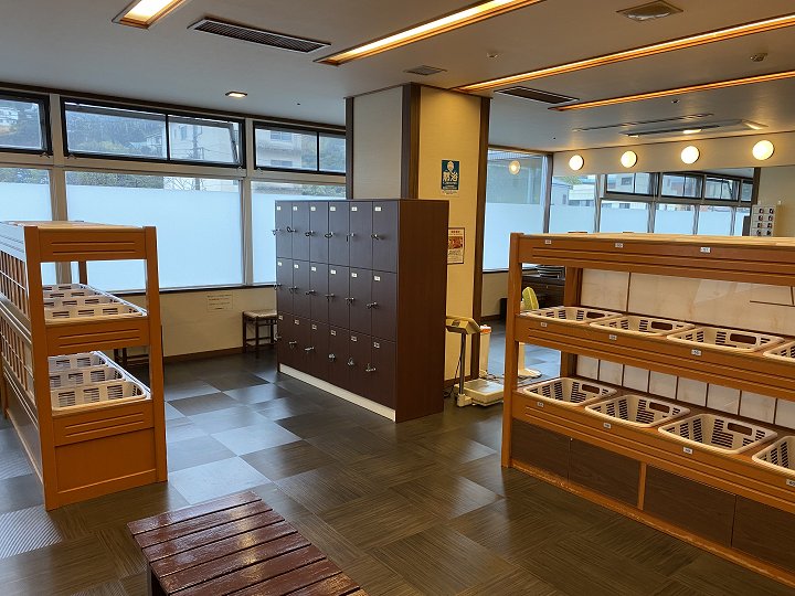 (脱衣棚とロッカー、裏に貴重品ロッカーあり)