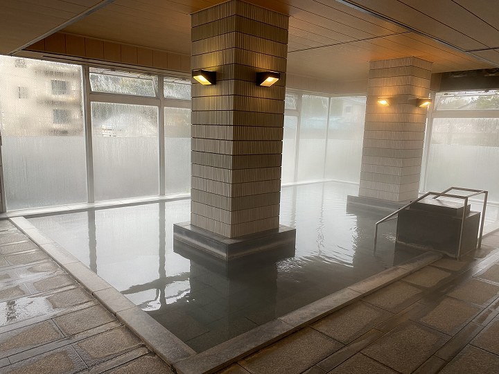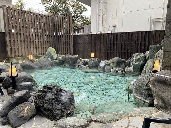 露天風呂の三方はホテルの壁に囲まれているので解放感はいまいちです。