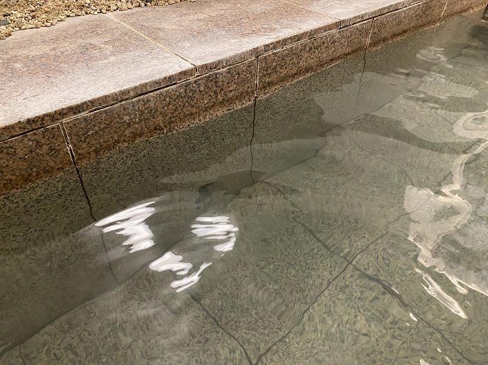 無色透明の温泉は無味無臭の適温で肌にまとわりつく感じです。