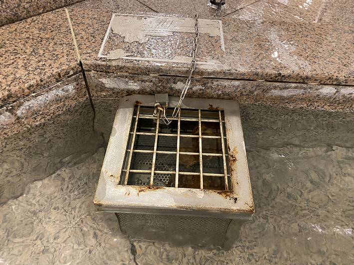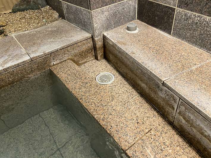 浴槽の奥に排水口がありますが、温泉は手前に流れ出ている量が