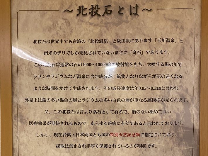 こちらの温泉の特徴は北投石が使われていることで、浴槽の隅に