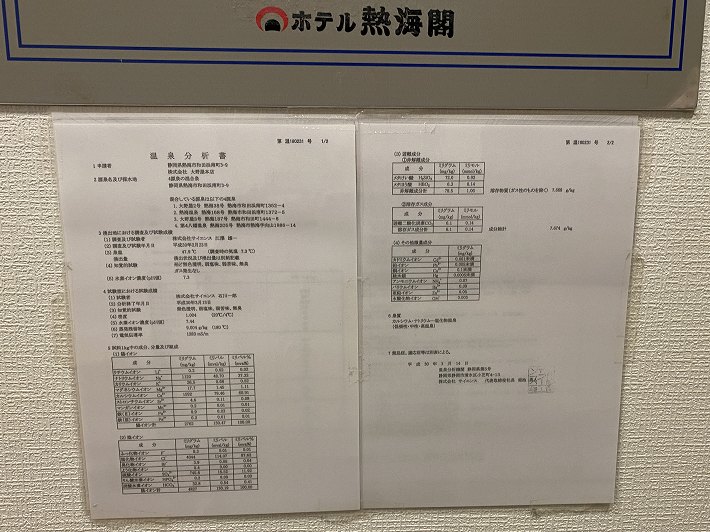 温泉分析書によると源泉名は熱海38、168、187、205号の4源泉