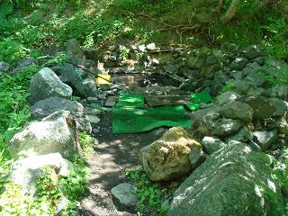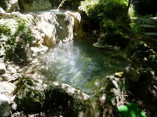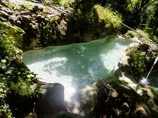 (滝見の湯) 3段の湯から50メートル奥に行った所に もう一つの野天風呂 滝見の湯があります。 ![]() _____(滝見の湯の標識)______________(落差5mの滝) 滝見の湯も100%の源泉掛け流しで、浴槽内には 小さな湯の花が浮遊しています。 手前にあるホースから温度調節の水が出てましたが、源泉かけ流しで問題ないと思います。 ![]() ______(滝見の湯)____________(左手前にあるのが水の蛇口) 温泉は無色透明・無味無臭で 肌触りにも温泉らしい特徴を感じませんでした。 ![]() ________(湯口)_________________(排湯口) ____ - - - - - - - - |