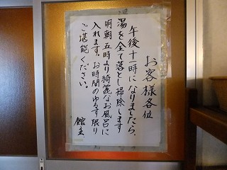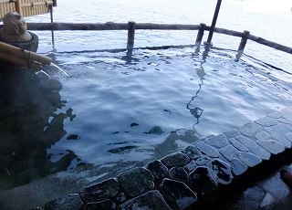 伊豆半島を135号線で南下すると 網代の町の入り口の左にあります。 この時は正月だったので 玄関に門松がありました。 (磯料理の宿 平鶴)玄関を入ると ロビーに豪華な調度品が並んでいます。 ![]() ______(フロント)__________________(ロビー) ロビーから浴室に行く廊下に 貴重品ロッカーとマッサージチェアーと血圧計があります。 ![]() (貴重品ロッカーとマッサージチェアー)__________(血圧計) (浴室の入り口に掛かる湯のれん)浴室は 夜の8時に男女が入れ替わるそうです。 (温泉の入れ替えの案内)脱衣棚は籐の籠なので、貴重品は 廊下にあるロッカーに入れます。 ![]() ____(洗面ドレッシング)________________(脱衣棚) 脱衣所にある案内によると 源泉名は下多賀 1号泉、泉質は カルシウム・ナトリウム-塩化物 温泉で、加水・加温・循環ろ過・塩素消毒をしておらず、温泉は 午後11時に湯を落とすので 翌朝の5時からキレイな温泉に入れるとのことです。 (温泉分析書)浴室に入ると 右の壁に9つの洗い場があて、左奥に 立って使うシャワーブースがあります。 黒糖と書かれたソープ類は甘い臭いがして、温泉からあがっても しばらく匂いが取れま せんでした。 ![]() _______(洗い場)________________(シャワーブース) 内湯の浴槽は 2つの四角形を合わせたような形をしていて、浴槽の中央に太い柱があります。 公式サイトによると自家源泉は2本あって、内湯と露天風呂に それぞれ別の源泉を使用して いて、内湯の源泉は美肌効果や疲労回復効果が高いそうです。 ![]() ______(内湯の浴槽)______________(奥から見た浴槽) 温泉は100%の源泉かけ流しで、無色透明・無臭の温泉は かなり強い塩味がします。 ![]() ________(湯口)______________(浴槽からあふれる温泉) 浴槽の中にカメの石像があって、浴室の横に 意味の分からない女性の石像があります。 ![]() __(浴槽内にあるカメの石像)_____________-(女性の石像) 海に面した露天風呂は素晴らしい眺めで 浴槽の下まで波が打ち寄せていますが、浴槽が 北向きで 2方に壁があるうえに屋根も付いている為に開放感はいまいちです。 ![]() _____(露天風呂の浴槽)___________(露天風呂から見た景色) 湯口の2本の筒から出ている温泉は それぞれに違うようで、上から かなり熱い温泉が出て いて、下から やや熱めの温泉が出ていました。 公式サイトによると 地下300mから引いた源泉を直接露天風呂に かけ流しているそうです。 (2本の湯口)(湯上り) 温泉から上がると冷水器のサーバーが用意してありました。 (冷水器)_____ - - - - - - - - - - - - - - - - - - - - |