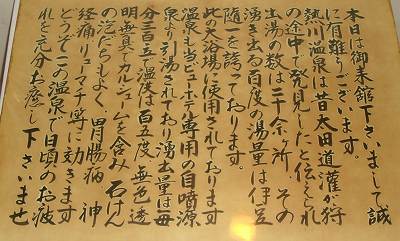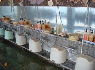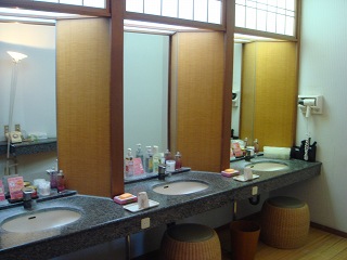 ※ この後 倒産して、現在は伊東園ホテル熱川として営業しています。 小田原厚木道路→西湘バイパス→真鶴道路で135号線を南下すると、熱川バナナワニ園 入り口の先の左にあります。 ![]() ____(熱川ビューホテル)________________(ロビー) ホテルの規模は大きいが、外観も館内の作りも 一昔前の感じです。 ![]() _(調度品の全てが籐製の脱衣所)___________(洗面ドレッシング) (脱衣所にある自噴源泉の案内)脱衣所から階段を下りた所に大浴場があります。 ![]() ____(大浴場に下りる階段)__________(洗い場のソープ類は馬油) 浴室に硫化水素臭が漂っているのは良かったが、反面 しばらく掃除されてなくて 白く曇った ままの窓ガラスや 見苦しいほど伸びた生垣のリュウゼツランには、ホテルの運営に対する 前向きな姿勢が感じられませんでした。 (ダイアモンド風呂)内湯は 左側の赤レンガが積まれた湯口と窓側にある2ヶ所の湯口から大量に源泉が投入 されていますが、浴槽からあふれた温泉は(排水溝ではなく)窓側にある取水口に回収されて います。 硫化水素臭がする温泉はツルスベの肌触りで、長時間入っても疲れない やさしい泉質です。 (レンガが積まれた湯口)露天風呂は10人が入れる大きさで 目の前の海に大島が見えますが、三方を囲まれている ために開放感はいまいちで、左側にある丘が邪魔をして海の広さを感じられませんでした。 (露天風呂)(もう1つのの浴室) 男女の浴室は夜中の12時に入れ替わるので、1泊すれば両方の温泉に入れます。 ![]() ____(洗面ドレッシング)_______________(洗い場) こちらの浴室は壁のデザインが凝っていて、床には 触感の良い茶色い石が使われていて、 こちらの浴室にも硫化水素臭が充満してました。 ![]() _____(左側の浴槽)________________(右側の浴槽) 露天風呂の作りも こちらの方が凝っていて、ヒノキの浴槽から海に浮かぶ大島が見えます。 ![]() __(ヒノキ造りの展望露天風呂)__________(露天風呂から見た大島) _____ - - - - - - - - - - - - - - - - - - - - |