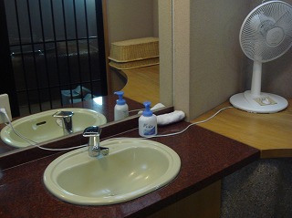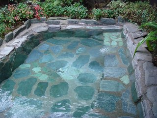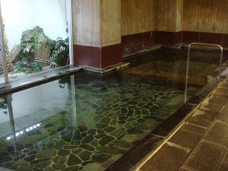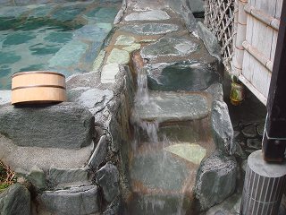 国道135号線を南下して「伊東駅入口」の信号から2つ目の信号を右折したら、左にある 小学校の横を走る一方通行の道から2つ目の通りを右に入る。 (大東館)温泉は 時間制で男女が入れ替わる流れ湯大浴場と京の湯大浴場の他に 貸切で利用できる 防空壕を利用した五右衛門風呂と露天風呂と寝風呂があります。 ※ 貸切の使用料はかかりませんが 利用時間は40分以内が原則で、貸切風呂の利用状況は ロビーの奥にある表示板の点灯で確認できます。 ![]() _______(フロント)_____________(大きな壷がある ロビー) 立ち寄り入浴時間の受付が始まったら、真っ先に 大東館以外ではお目にかかれない防空壕 を利用した五右衛門風呂に向かいました。 (五右衛門風呂) 防空壕の長い通路に飛び石が並べられ、ライトが当たる所には緑色の植物が生えています。 (防空壕の通路、画像をクリックで いわれが拡大)長い防空壕の奥にある真新しいドアを開けるとキレイな脱衣所があって、そのドアに施錠すると 廊下にある貸し切り表示灯が点灯する仕組みになっています。 (五右衛門風呂の洗面台)次のドアを開けると左にカランがあって 正面に五右衛門風呂が2つ並んでいますが、防空壕 の中なので 声の反響が半端でなかった。 温泉の温度はぬるめで、浴槽の底にある穴から湧き出る源泉が かけ流しになっていて、 錆びた五右衛門風呂の肌触りが良かった。 ![]() _(女将のセンスが感じられる洗い場)_______(2つ並んだ五右衛門風呂) (貸切露天風呂) 五右衛門風呂の次は、外にある 貸切露天風呂に入りました。 (貸切露天風呂)脱衣所には木製のイスと簡単な棚に四角い籐の脱衣籠があるだけで 洗い場はありません。 (簡素な脱衣所)石造りの浴槽は4人が入れる大きさで 使われている石の肌触りが良く、周囲を高い塀に 囲まれている為に開放感は少ないが 沢山の植木が目を楽しませてくれます。 こちらも温泉の温度はぬるめで、浴槽の底にある穴から湧き出た源泉が大量に流れ出て います。 ![]() (右の石の下から源泉の泡が出ている)________(大量に流れ出る温泉) 貸切風呂は 空いていれば何回でも利用出来ますが、寝湯だけは いつも待っている人がいて 利用することが出来ませんでした。 (男女別の大浴槽) 最後に入りましたが、この時の男湯は 京の湯大風呂でした (浴室の入り口に掛かる湯のれん)こちらは施設も備品も充実していて 洗い場に用意されたソープ類の容器にも若女将のセンス の良さが感じられます。 大東館は源泉の湯量が多いようで カランにまで源泉が使われていました。 ![]() ____(京の湯の洗面台)________________(洗い場) 3本の源泉を有する大東館の湧出量は毎分325リットルで、全ての浴槽が 温度を湯量で調節 する100%の源泉かけ流しで、源泉の投入方式は 浴槽内の不純物が流れ出やすいように 浴槽の下から湧き出る仕組みになっています。 無色透明・無味無臭の温泉は 湯上りに肌がツルツルになりました。 ![]() _____(京の湯の左側)_____________(同じく 浴槽の右側) _____ - - - - - - - - - - - - - - - - - - - - |