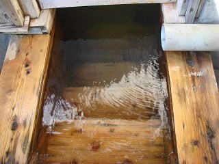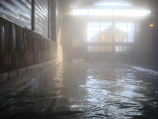 135号線を南下し、下田にある「中島橋」の信号から414号線を北上したら 蓮台駅前の信号を 左折して丁字路を左折すると 右にありますが、414号線から1本奥に入った道路は狭い。 ![]() _______(金谷旅館)_____________(門松が立てられた玄関) 昭和初期の雰囲気が漂う玄関を入ると 左に受付があって、その向かいに 若女将が弾くという ピアノが置いてある部屋がります。 ![]() ___(玄関から浴室に行く廊下)____________(新聞とピアノ) 廊下の右に休憩所と女性風呂の入り口があって、正面の奥に千人風呂の入り口があります。 脱衣籠は籐製の籠なので、貴重品は 奥にあるロッカーに入れます。 ![]() ____(千人風呂の入り口)___________(脱衣所、右奥にロッカー) 入浴料金が1000円なのに 洗い場には固形石鹸しかなくて、カランは お湯と水の蛇口が離れ すぎていて使いにくかった。 (洗い場)カマボコ型をした浴室は総ヒノキ造りで、千人風呂の浴槽は数十人が入れる大きさです。 縦長の浴槽の中央にある仕切り板の奥は一段深くなっていて、浴槽の壁側にあるイスも 胸まで浸かる深さです。 ![]() _____(湯量が多い湯口)___________(総ヒノキ造りの千人風呂) 千人風呂は混浴なので女性風呂から入って来られる扉もありますが、女性風呂も 千人風呂と 同じぐらいの大きさがあるようで、この時 千人風呂に入って来る女性はいませんでした。 ![]() __(浴槽の中にあるブロンズ像)__________(もう一つのブロンズ像) 千人風呂の窓側にある階段が露天風呂の出口です。 ![]() (画像の11時の位置が露天風呂の出口)________(露天風呂に出る階段) 露天風呂は6人が入れる大きさですが イヌマキの生垣が高すぎて開放感はありません。 100%源泉かけ流しの温泉は無色透明で 癖がなく やわらかい肌触りです。 ![]() _______(露天風呂)____________(打たせ湯とイヌマキの生垣) (湯上り) 休憩所は上品な作りで、利用している人も もの静かな人ばかりだったので 落ち着いた 雰囲気の中でくつろぐことができました。 ![]() __(落ち着いた雰囲気の休憩所)___________(窓側のテーブル席) _____ - - - - - - - - - - - - - - - - - - - - |