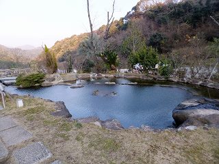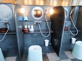 河津と下田を山側の道で繋ぐ414を走り、伊豆急行線の稲梓駅の西にある蓑作から15号線に 入って5分ほど走った所にある橋の手前の信号から観音温泉の案内に従って左に入りますが、 ここから道が狭くなって 昭吉温泉との分かれ道から先は さらに狭くなります。 ![]() _______(駐車場)_________________(観音温泉) 日帰り入浴の受付は 観音像がある建物の中にあります。 (観音像)館内にある券売機で入浴券を購入しようとしたら、土産物コーナーの受付の女性が出てきて 丁寧に説明してくれました。 ![]() _______(券売機)______________(受付と土産物コーナー) 受付を済ませてから外に出て 公園のように広い庭の中を歩いて行くと・・ ![]() _____(庭にあるテラス)_______________(庭園の池) テラスの先にある階段を下りた所に男女別の温泉棟があります。 ![]() ___(女性棟、奥に男性棟)_______________(男性棟) 施設は建てられたばかりのようで 館内はピカピカです。 (入り口に掛かる湯のれん)靴箱の所にある温泉分析書によると 源泉名は観音温泉第1号泉 横川7号で、泉質は アルカリ性単純温泉です。 ![]() __(靴箱、上に温泉の成分表)_____________(温泉の成分表) 脱衣所には カギ付きのロッカーと木枠に入った籐の籠があって、脱衣ロッカーを開けると 中に籐の籠が入っています。 ![]() ______(脱衣棚)______________(籐の籠が入ったロッカー) 洗面ドレッシングもシャレた作りです。 (洗面ドレッシング)浴室に入ると かけ湯があり、天井を見上げると太い柱と梁が使われていて、浴室の入り口の 天井には 湯上りに使う エアシャワーがありました。 ![]() _______(かけ湯)_________________(太い柱と梁) 浴室の右にある12の洗い場には仕切り板が付いていて、手前の3つには 白い陶器の 洗面器が備え付けられています。 ![]() _______(洗い場)_______________(白い陶器の洗い場) 内湯の浴槽は大きなヒノキ造りで、中が 温度違いの2槽に分かれています。 両端にある湯口の他に 右側の浴槽の中央にある十文字の湯口からも大量の温泉が出て います。 ![]() ________(内湯)_______________(浴槽の中にある湯口) 温度は 左側の浴槽が ぬるめで、右側の浴槽が ややぬるめの適温です。 ![]() ______(浴槽の左側)________________(浴槽の右側) 温泉は無色透明・無味無臭で ヌルスベとツルスベの肌触りを併せ持つ素晴らしい泉質です。 かすかに 炎天下にさらされた岩のような臭いがしましたが 無臭と言っていいと思います。 (湯口)温泉は源泉かけ流しだと思いますが、浴槽からあふれた温泉は 排水溝でなく 専用の回収口 に流れ込んでいました。 (温泉が流れ込む回収口)露天風呂は10人が入れる大きさで 奥が3人分の寝湯になっています。 内湯の温度は ぬるめでしたが、露天風呂は さらにぬるかった。 ![]() ______(露天風呂)_____________(露天風呂から見た景色) 露天風呂は 浴槽からあふれた温泉がオーバーフローになっています。 ![]() ________(湯口)______________(浴槽からあふれる温泉) 露天風呂にあるFRP製のジャグジーの浴槽は 温泉成分の影響で滑りやすかった。 サウナもありましたが 私は利用していないので分かりません。 ![]() _______(サウナ)________________(ジャグジー槽) 露天風呂に足湯もありましたが、時期的に 裸で利用する気にはなれなかった。 (足湯)(湯上り) 脱衣所にある観音温泉水を飲んでから受付がある棟に戻ったら、受付の女性から 休憩棟で 休むように勧められました。 ![]() __(浴室の入り口と観音温泉水)_____________(休憩棟) ![]() ____(フローリングの広間)___________(テーブルがある部屋) ![]() ____(シンクがあるテラス)____________(客室棟に行く廊下) _____ - - - - - - - - - - - - - - - - - - - - |