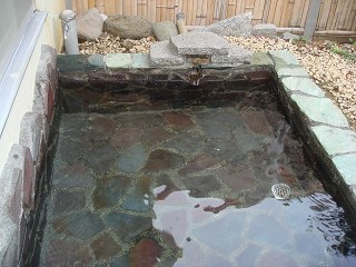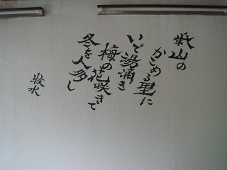 修善寺から136号線を南西に走り、土肥町の馬場バス停の所にある信号(右にマルト水産)を 右折して最初の交差点を右折すると 左にあります。(駐車場は5台) ![]() __(磯料理マルトとマルト水産)______________(楠の湯) 表にある券売機で購入した入浴券を 中に入った所にある番台に出します。 ![]() ____(入り口にある券売機)_______________(番台) 脱衣所は新しくて清掃も行き届いていますが 作りは簡素で余計なものはありません ![]() ___(左に 鍵が付いた脱衣棚)___________(シンプルな洗面台) 洗い場も清掃が行き届いて 腰掛と洗面器もキレイに並べられていますが、共同浴場なので 洗い場に石鹸類はありません。 ![]() _____(腰掛と洗面器)________________(洗い場) 内湯の浴槽は3人が入れる大きさで、無色透明・無味無臭の温泉はサラッとた癖のない 泉質です。 ![]() ______(内湯の浴槽)_________________(湯口) 浴室の壁に牧水の詩が書かれています。 ![]() _(浴室の壁に書かれた牧水の詩)_____________(浴室の天井) 露天風呂は鉄平石のような石が張られた浴槽で 2人が入れる大きさです。 内湯の温度は かなり熱めでしたが、露天風呂は ぬるかった。 (露天風呂)露天風呂の周りは高い竹柵で囲まれていますが圧迫感を感じることはありません。 (露天風呂に咲いていた白いサザンカ)正月だったからか、先客が私と入れ替わりに出ていった後は 貸切の状態でした。