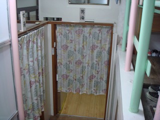 (浴室の入り口に下がるカーテン)