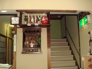 中に入ると靴箱があって、そこから階段を下りた所に 女湯と男湯の入口がありますが、