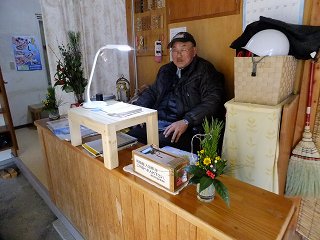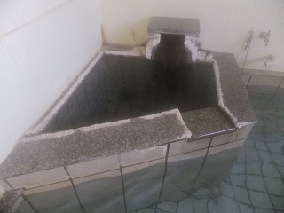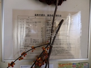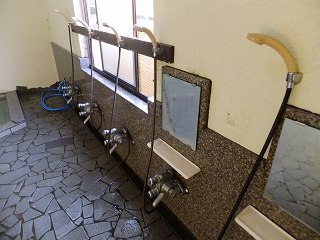 土肥にある松原公園から海岸に出て、左にある堤防に沿った道路を1〜2分歩いた所にあります。 (屋形温泉)先ほど入った弁天の湯は新しくてキレイでしたが、こちらは かなり年季が入った施設です。 ![]() __(入り口に掛かる湯のれん)______________(券売機) 番台のおじさんは 見た目と違って細かいところまで気遣いをしてくれるやさしい人でした。 ![]() ____(番台のおじさん)_______________(正月用の飾り) 脱衣所も簡素な作りで、脱衣棚は 木枠の棚にプラスチックの籠が入っています。 ![]() _______(脱衣所)__________________(脱衣棚) 脱衣所にある温泉の成分表によると 源泉名は土肥温泉(混合泉)、泉質は カルシウム・ ナトリウム-硫酸塩・塩化物温泉で、加水・加温・循環 ろ過・入浴剤はしておらず消毒だけ しているとのことです。 (温泉の成分表)浴室の床には鉄平石のような石が使われていて、広い浴室の角にタイル張りの浴槽があります。 (浴室)利用者の多くは地元の人のようで 洗面器とイスを並べるルールが守られていて、右の窓側に ある5つの洗い場は 右の2につだけに鏡が付いています。 ![]() _____(洗面器とイス)________________(洗い場) 温泉由来析出物の結晶が付いた湯口から出ている源泉は かなり熱いが、浴槽の温度は ぬるくて、無色透明・無味無臭の温泉はツルスベの肌触りです。 かすかに炎天下にさらされた岩のような臭いがしましたが 無臭と言っていいと思います。 ![]() ____(2段階になった湯口)________(温泉由来析出物の結晶が付いた湯口) 浴室の窓を開けると 目の前に西伊豆の海が見えました。 (窓を開けて見た景色)