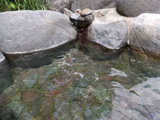 露天風呂の川側にある「熱めの湯」と書かれた小さな浴槽が適温でした。
